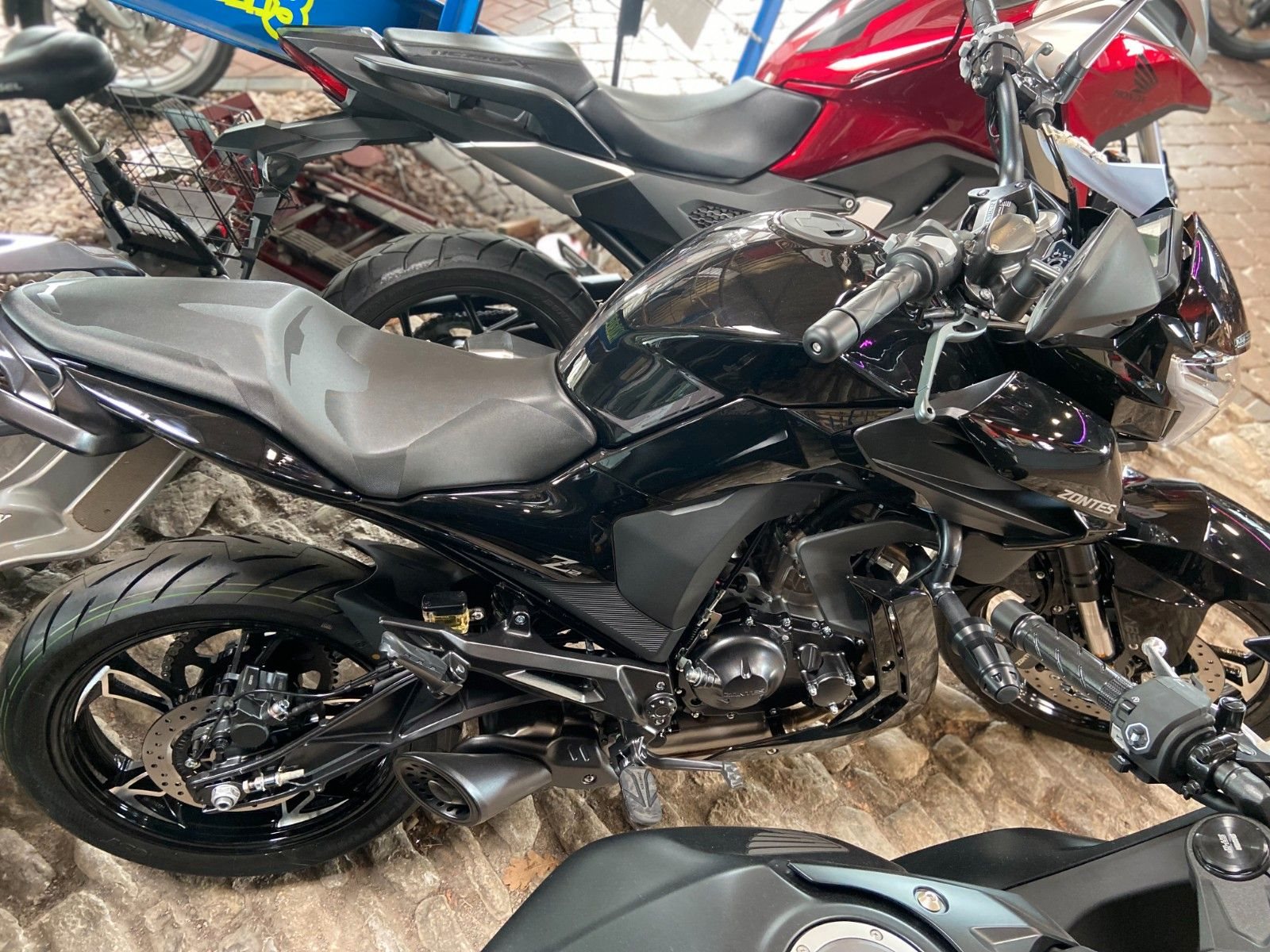 ABS Katalysator Elektrostarter Fahrzeugbeschreibung Bei Fragen einfach anrufen 03601-442307 Sofort lieferbar. Die Motorräder sind TOP verarbeitet und Ausgestattet u.A. mit Bosch-Einspritzung und ABS,LED Scheinwerfer,beleuchtete Armaturen uvm.. auch Neufahrzeuge bestellbar: Zontes ZT 125-G1 oder ZT 125 U Neufahrzeug - vom Zontes Vertragshändler mit 24 Monaten Garantie Ganz neues Modell auf dem deutschen Markt Hohe Qualität, Liebe zum Detail, perfekte Oberflächenbearbeitung und Hochtechnologie zeichnen dieses neue Modell der Marke Zontes aus. Ein robuster hochmoderner Motor mit elektronischer Einspritzung von Bosch, 6 Gang Getriebe, geringem Verbrauch und bereits nach Euro 5 Abgasnorm typisiert. Scheibenbremse vorn + hinten mit Bosch ABS USD Telegabel Klarglasscheinwerfer LED Rücklicht und Scheinwerfer Finanzierung auch ohne Anzahlung möglich! Inzahlungnahme / Tausch / Ankauf / Lieferung möglich Wir bitten generell um eine Terminabsprache vor einer Fahrzeugbesichtigung! Unsere Öffnungszeiten: Die - Fr.: 10.00 - 12.30 und 13.30 - 18.00 Uhr Sa: 10-13UHR . Der Fahrzeug und Vertrieb sowie die Ersatzteilversorgung erfolgt über BETA Italien. Preis = Barpreis zzgl. Nebenkosten durch KFZ Dokumente Fahrzeugdetails