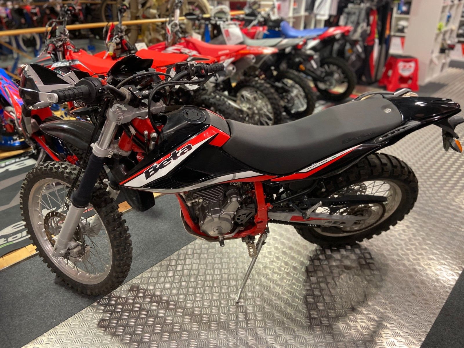 Katalysator Elektrostarter Fahrzeugbeschreibung BETA ALP 4.0 Gebrauchtfahrzeug geringe Laufleistung Handguards Unterfahrschutz Eine Ikone unter den vielseitigsten Fahrzeugen der Motorradwelt, ein einfaches, intuitiv zu fahrendes und markantes Motorrad. Auf der Straße ebenso zu Hause wie im Gelände, fu?r den Weg zur Arbeit (und zuru?ck) ebenso geeignet wie fu?r besonders anspruchsvolle Touren abseits asphaltierter Straßen; Die ALP präsentiert sich als absolut alltagstaugliches und gut gemachtes Bike, das mit einer kopfstarken Zielgruppe liebäugelt. Diese reicht von jungen Fahrern mit A2-Fu?hrerschein auf der Suche nach dem ersten Motorrad bis hin zu Wiedereinsteigern, die sich ein einfaches Fahrzeug mit sparsamem Verbrauch wu?nschen, von Fahrerinnen, die nach einem modernen, nicht zu großen oder schweren Motorrad Ausschau halten, bis hin zu allen Fans des leichten Offroad-Einsatzes, die ein ausgewogenes und spaßiges Gefährt brauchen. Die ALP ist das universelle Motorrad par excellence, das nun in einem gänzlich neuen Kleid ein Comeback feiert! Fahrzeugdetails